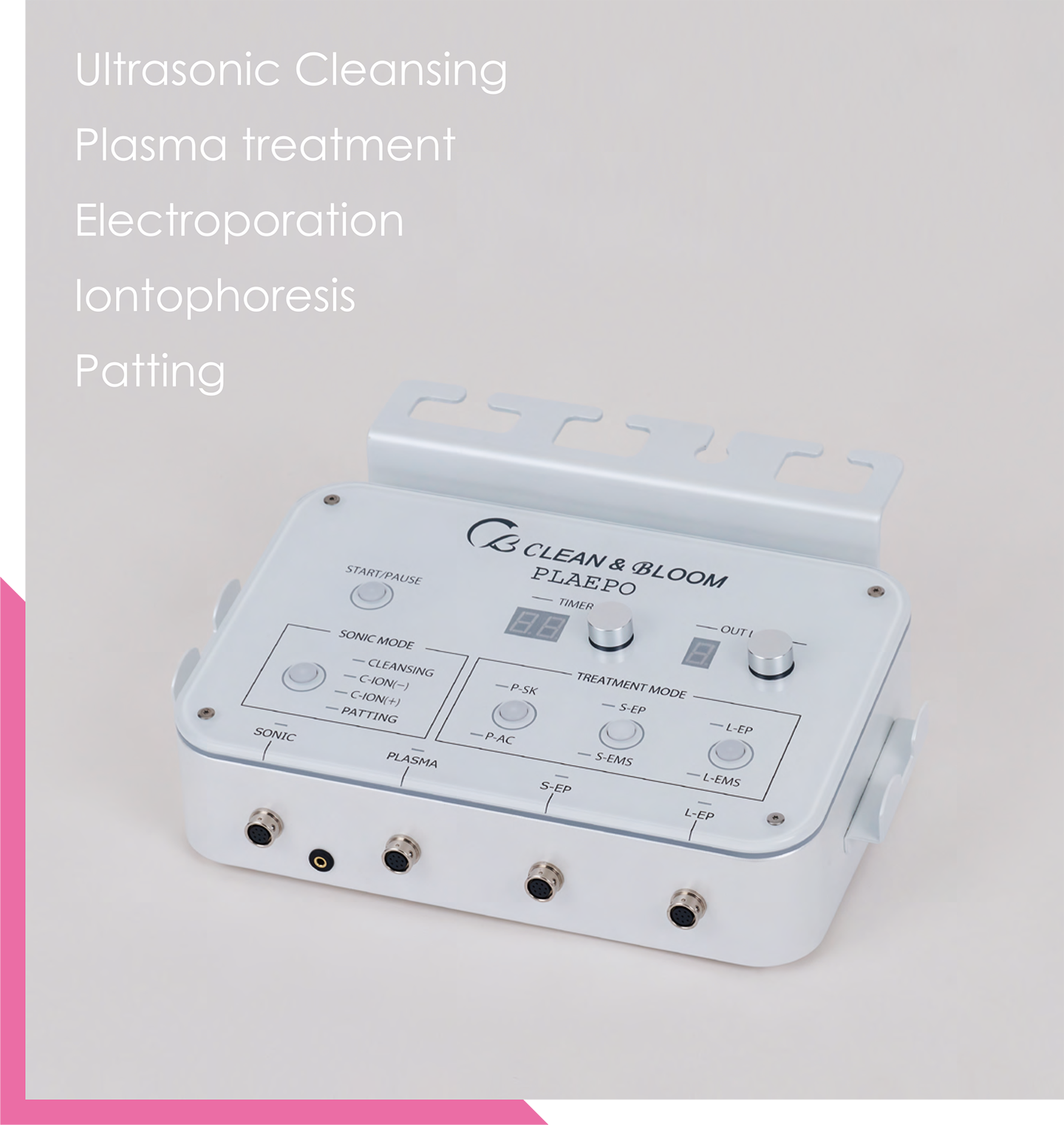 CLEAN&BLOOM(エレクトロポレーション)はクレンジング、エレクトロポレーション、イオン導入、パッティングの4つの機能が1台で可能になった最新の複合フェイシャルマシンです。